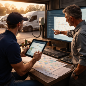 Die E-Flotte scheitert selten an der Technik. Sie scheitert am Alltag. An Touren, die sich täglich ändern. An Fahrern, die keine Zeit für Experimente haben. An Ladesäulen, die auf dem Papier gut aussehen, aber im echten Betrieb nicht planbar sind.